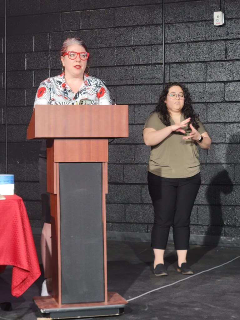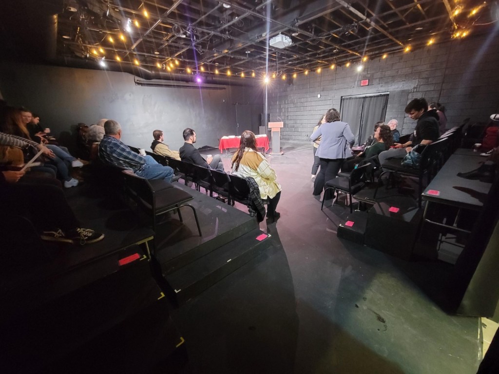 Finally, after a short break, Poet Laureate Ashley Cornelius took the stage! An award-winning, nationally recognized spoken word artist and speaker, Cornelius had the audience eating out of her hand with her gentle humor and powerful poetry. She read and performed many poems, beginning with “She is Big Bang Expansive,” on self-love and acceptance, sharing openly about the origin of the piece in her personal life. Later, she touched on the pain of the Club Q shooting in November, again flipping the narrative to resilience and empowerment with a poem celebrating queer joy. The last poem of the night was her signature piece, “Turn it Up (Defy Silence),” which calls out oppression and discrimination against the Black community and invites the audience to claim their voices, too, and speak out against injustice. After feeling the waves of warmth, unity, laughter and a few tears, who could say no?