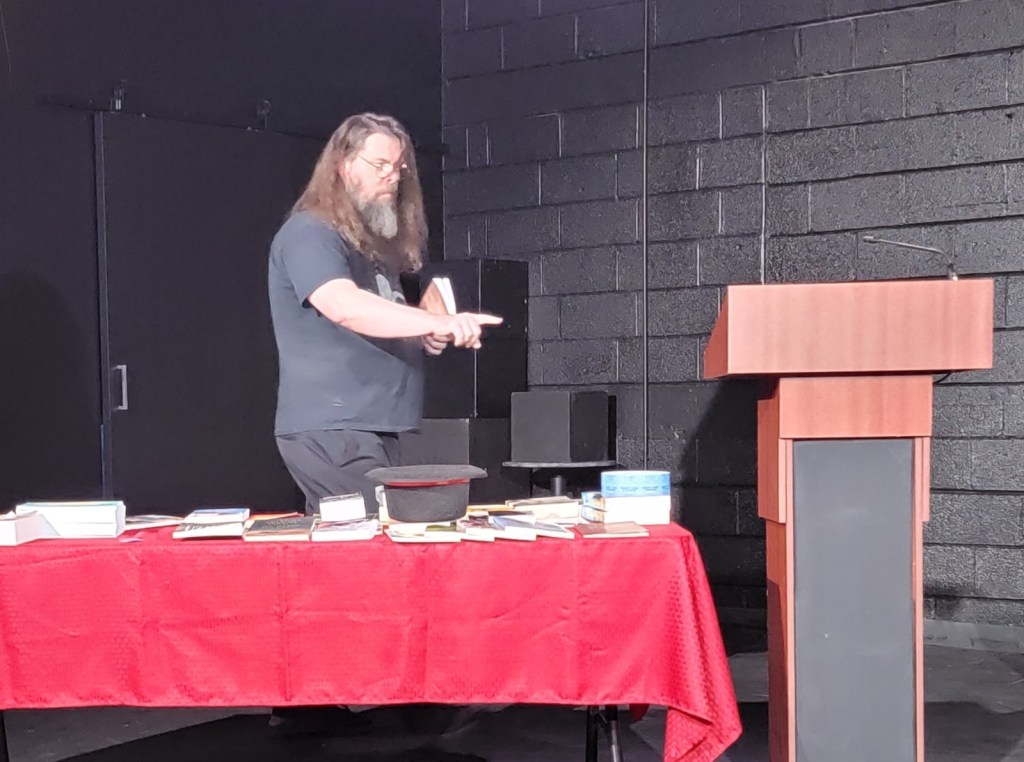 The event ended with a bountiful book raffle, with every audience member winning at least one new or gently used book, including PPSC publications Parley and Sitrep, science fiction novels, fantasy anthologies, and signed copies of books by authors from the Nearby Universe.