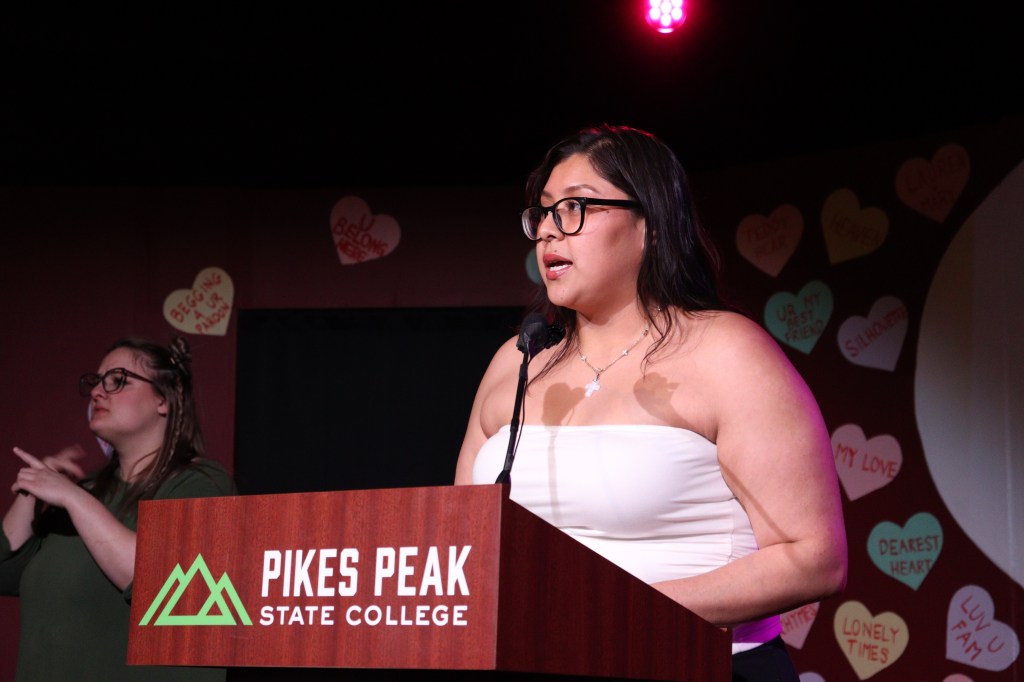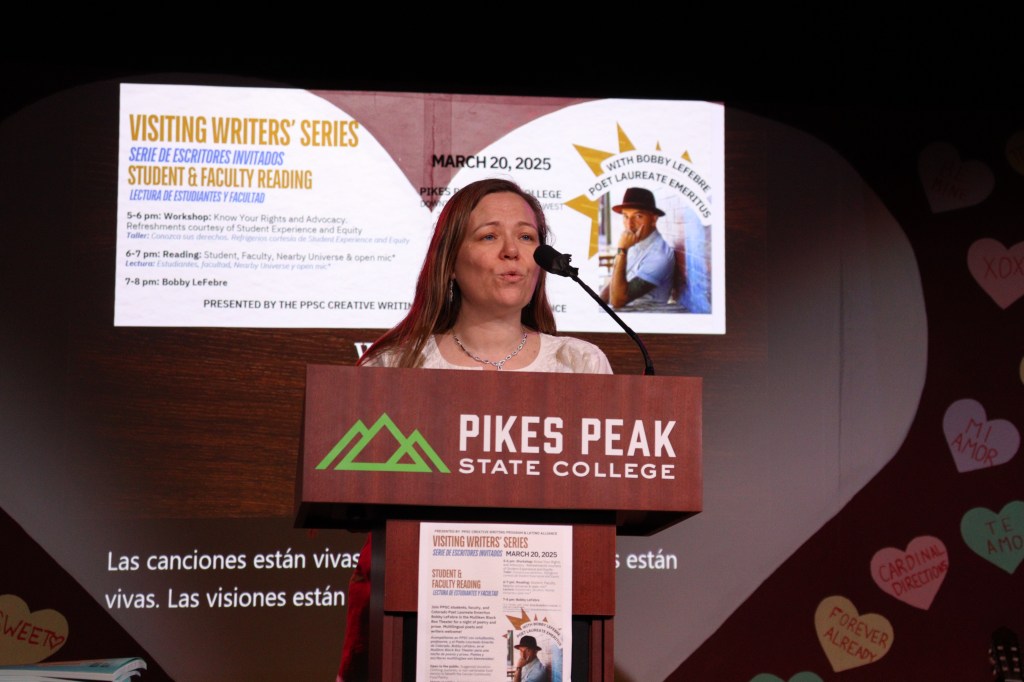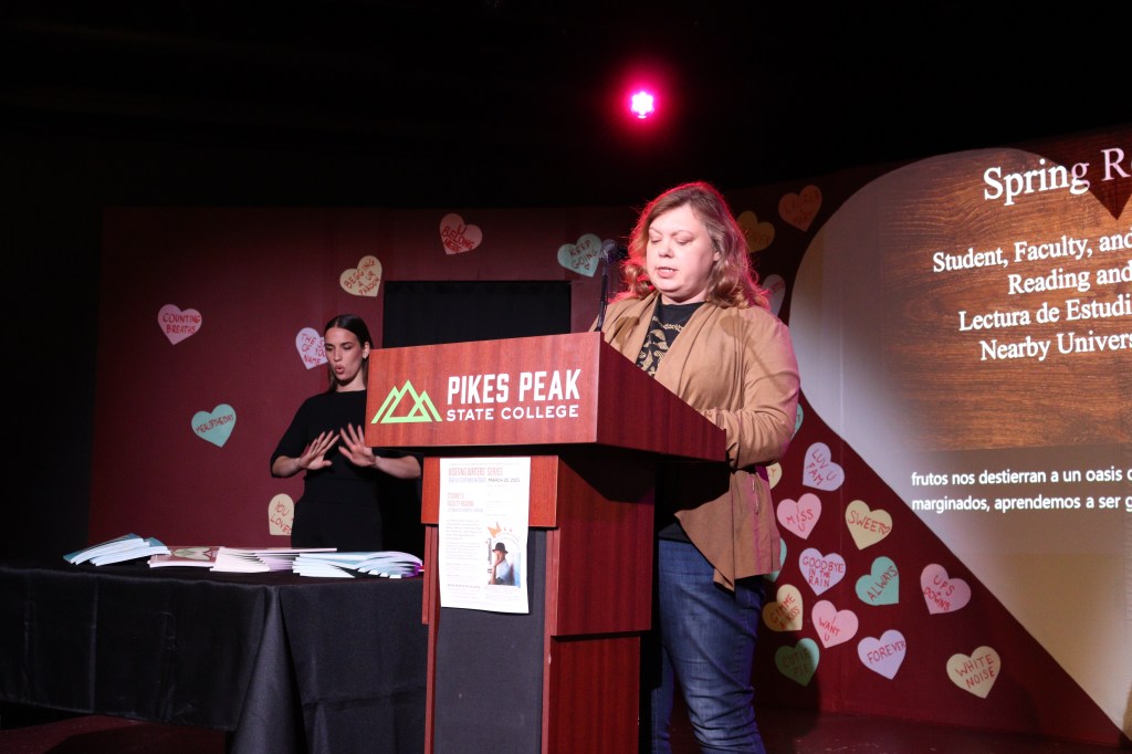 Las canciones están vivas! After a right-on-time Know Your Rights and Advocacy workshop and refreshments courtesy of Student Experience and Equity and Latino Alliance, the Spring Reading was alive and kicking in three languages at once, thanks to our sign language interpreters and real-time Spanish captions. Several PPSC poets and writers continued the advocacy theme, sharing work standing up for human rights and speaking out against injustice.