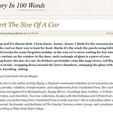 Heart the Size of a Car published on A Story in 100 Words- Brook Bhagat